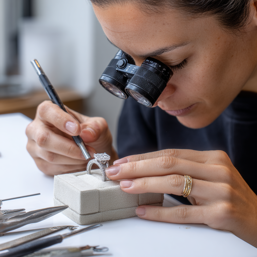Cada joya pasa por manos especializadas que pulen, revisan y perfeccionan cada detalle, combinando tecnología avanzada y el conocimiento de nuestros maestros joyeros para dar vida a piezas únicas y de la más alta calidad.